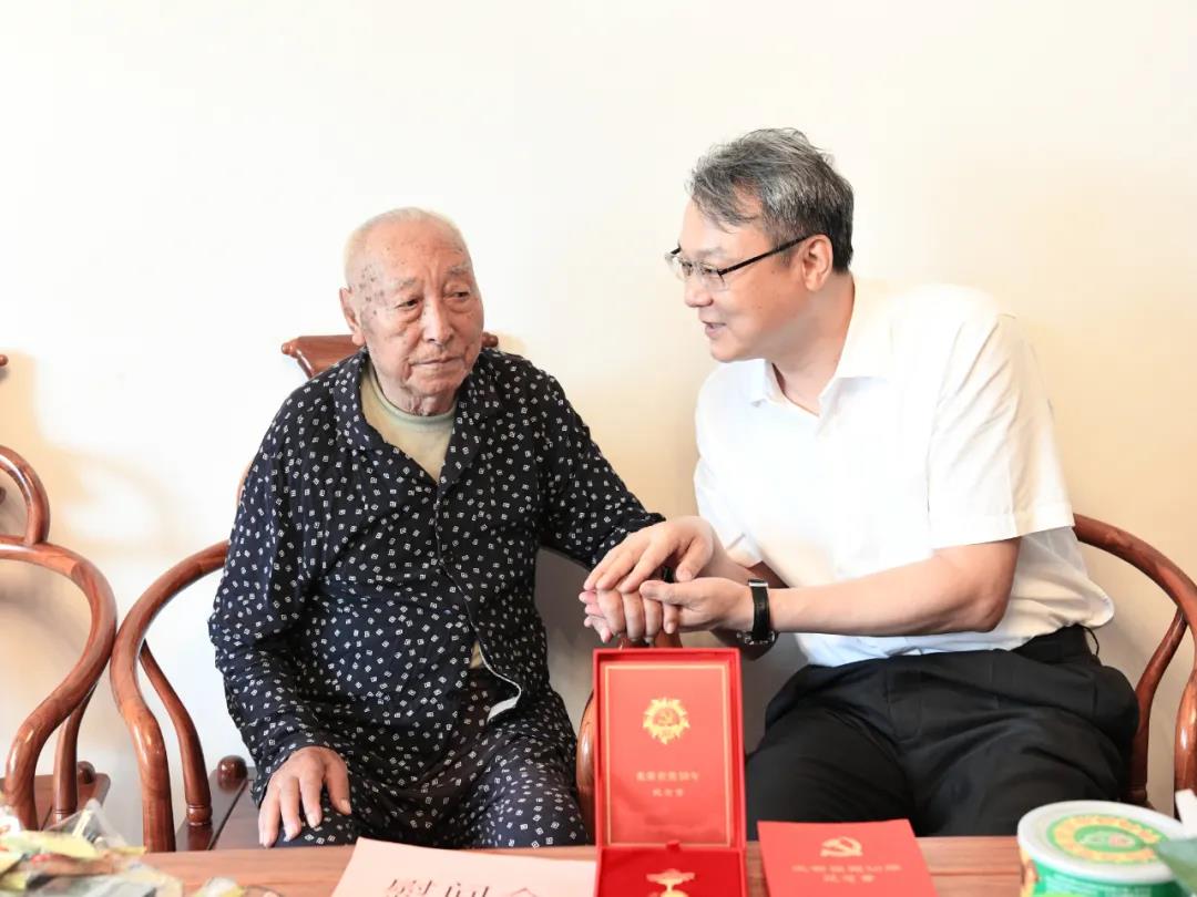 在卢老家中,周炼为他颁发“光荣在党50年”纪念章并为送上慰问金和慰问品,叮嘱他的家人照顾好老人的饮食起居,有困难和问题及时向组织反映,并祝愿他保重身体,安享晚年。