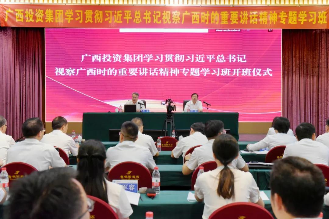 为深入学习习近平总书记视察广西时的重要讲话精神,把贯彻习近平总书记的重要讲话精神转化为广大党员干部推动集团高质量发展、建设世界一流企业的强大合力和自觉行动,集团党委组织开展学习贯彻习近平总书记视察广西时的重要讲话精神专题学习班。6月22日,专题学习班举行开班仪式。集团党委书记、董事长周炼在开班仪式上讲话,并作了题为《学习习近平总书记关于金融工作重要论述的体会》的专题党课。集团党委副书记、副董事长、总经理李斌主持开班仪式。